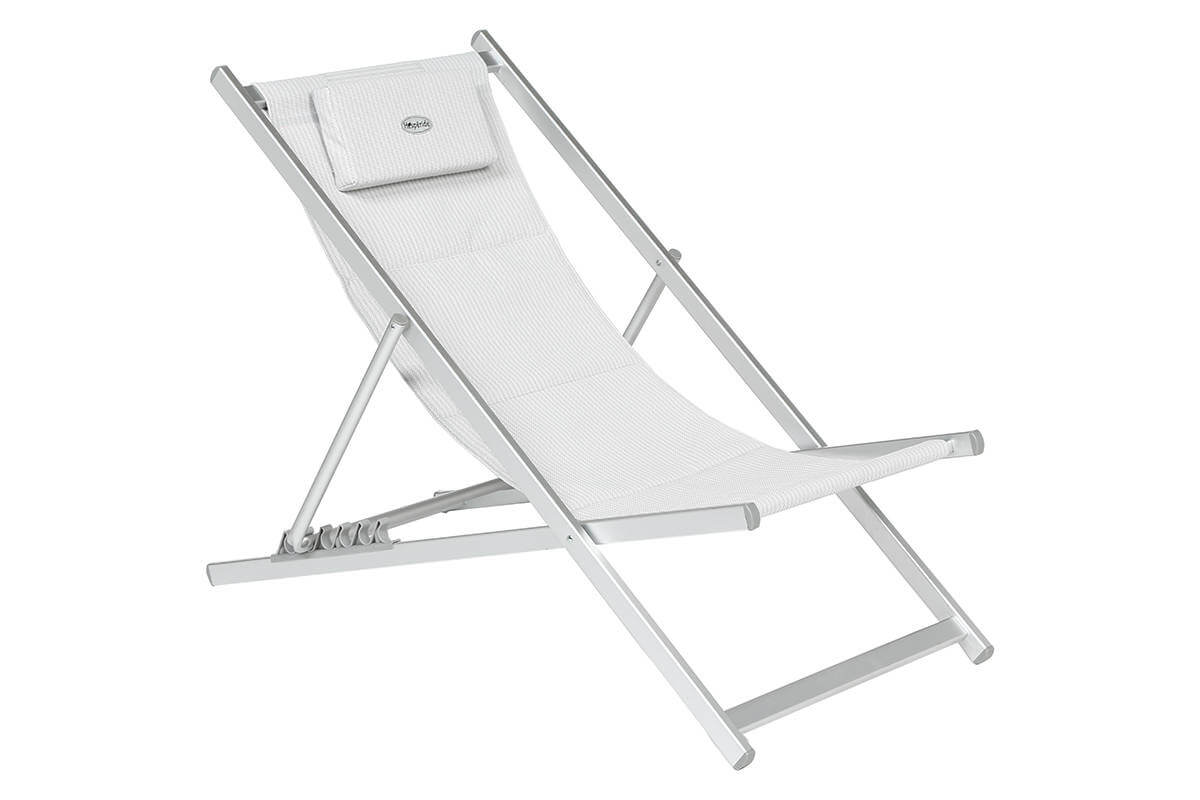- כסא אלומיניום לגינה, לבריכה וכדו' בעל מבנה העשוי מאלומיניום בשילוב בד טקסליין מרופד במגוון צבעים ובתוספת כרית ראש.