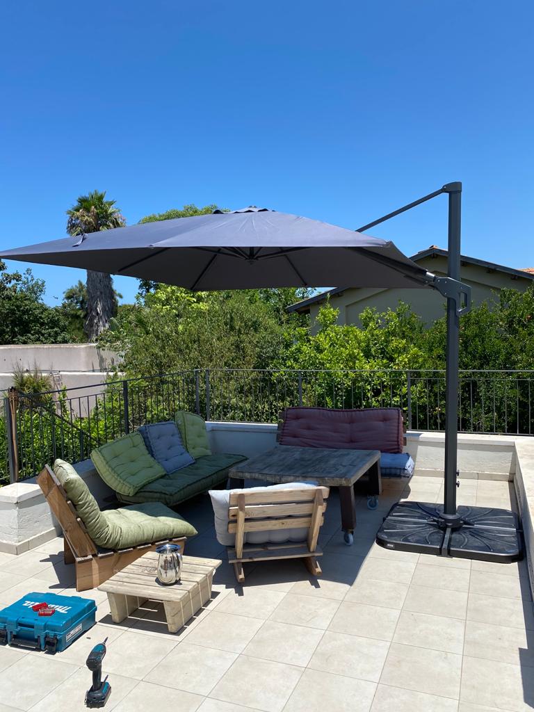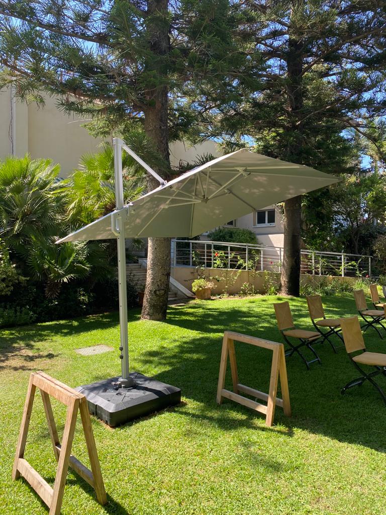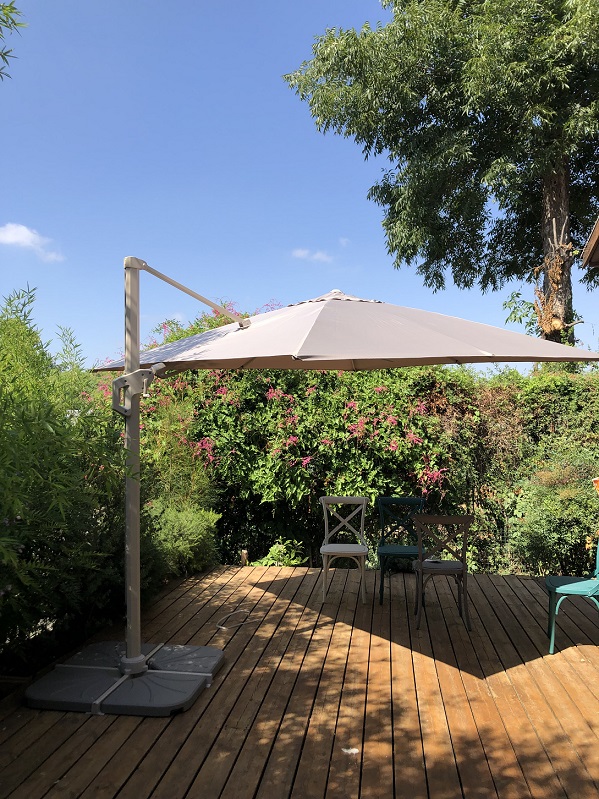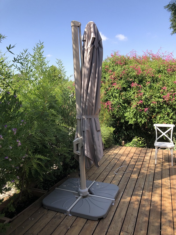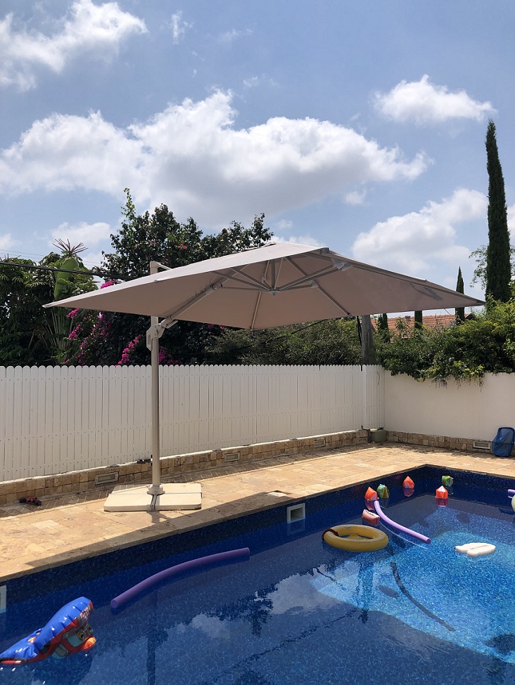 1. מסתובבת 360 מעלות סביב המוט המרכזי שלה, בעזרת פדל , על מנת להעניק הצללה למספר מרחבים שונים בחלל החוץ שלכם