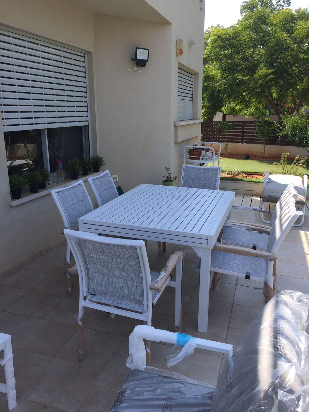 - מחיר לא כולל כסאות - ניתן לרכוש ביחד עם כסאות אלומיניום תואמים ומרופדים ליצירת מערכת אוכל שלמה לחלל החוץ שלכם
