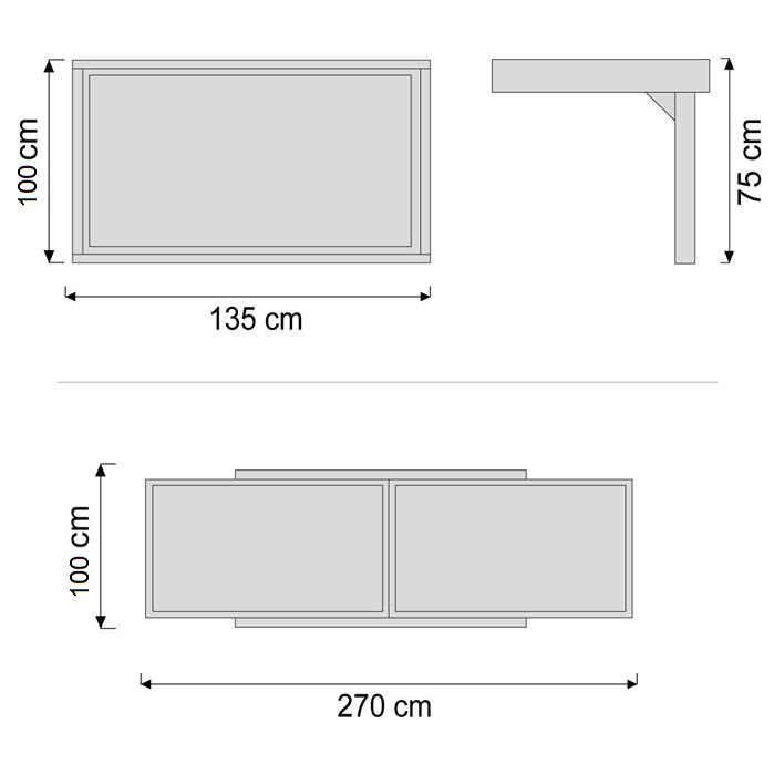 מידות : סגור - 100x135 | פתוח - 100x270 | גובה - 75 ס"מ