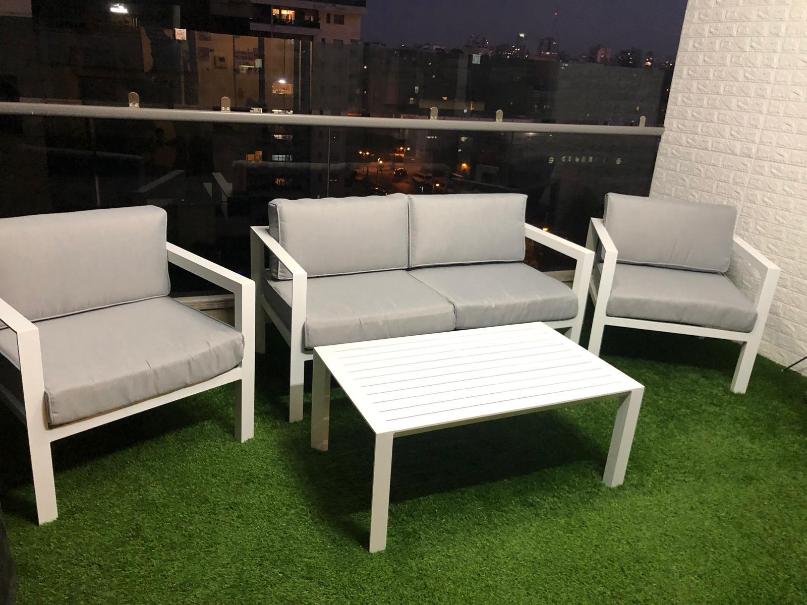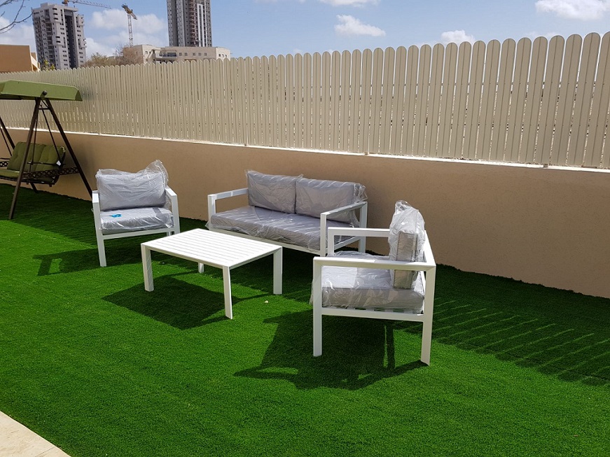 - פינת ישיבה אלומיניום לחוץ המתאימה הן למרפסות והן לגינות.