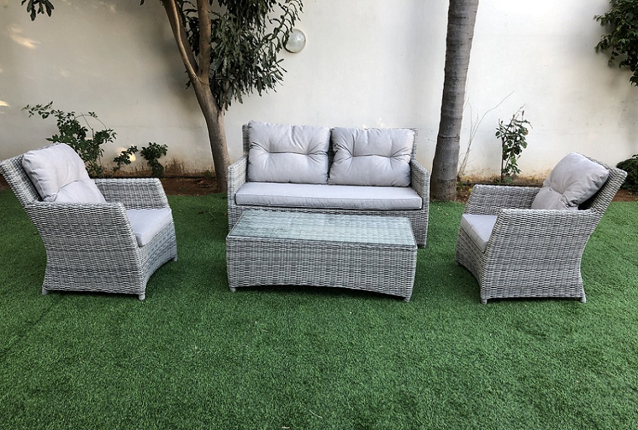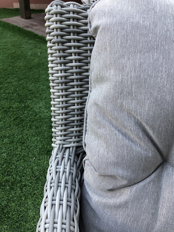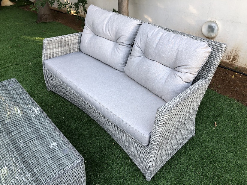- מערכת ישיבה לגינה דגם ETNA עשויה מראטן חצי עגול בשילוב עם מסגרת מאלומיניום - לעמידות מירבית לתנאי מזג אוויר.