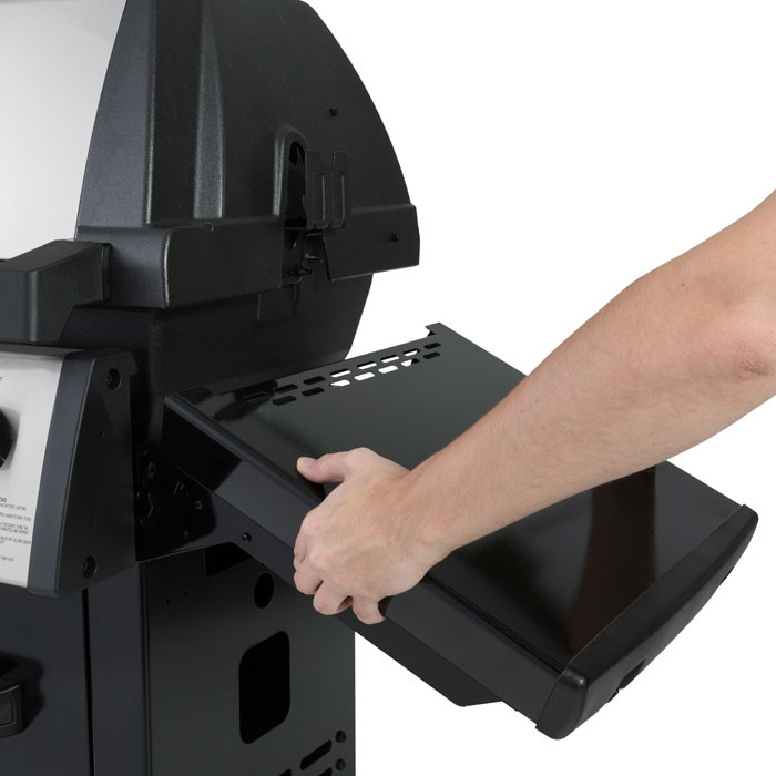 שיפוד רוטיסרי מסתובב לצלייה איטית, כירת צד מתקפלת והצתה אלקטרונית מתקפלת.