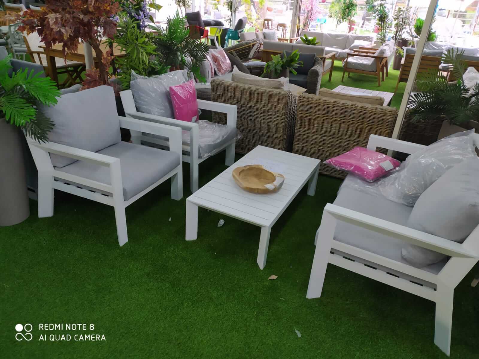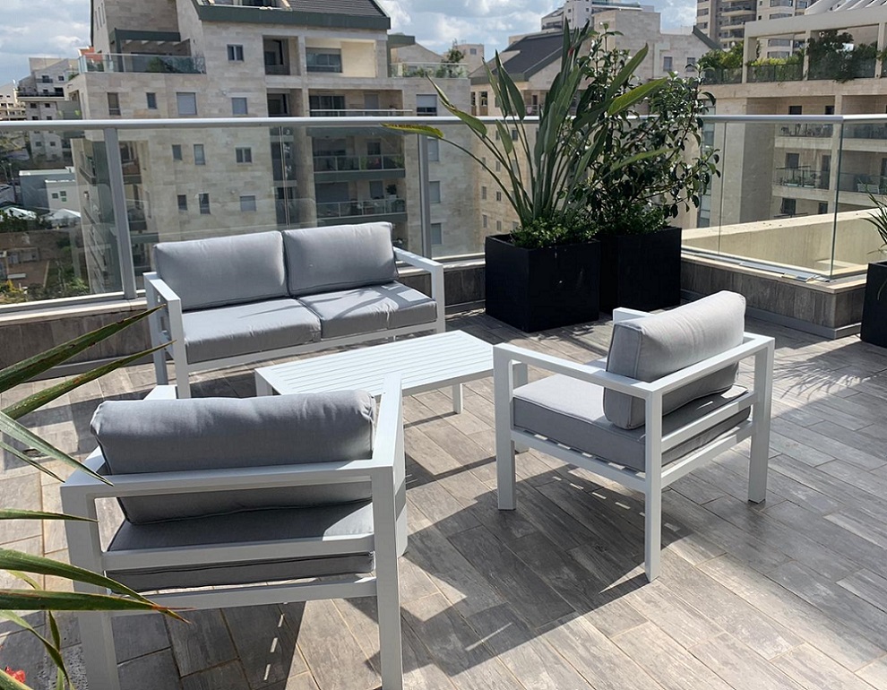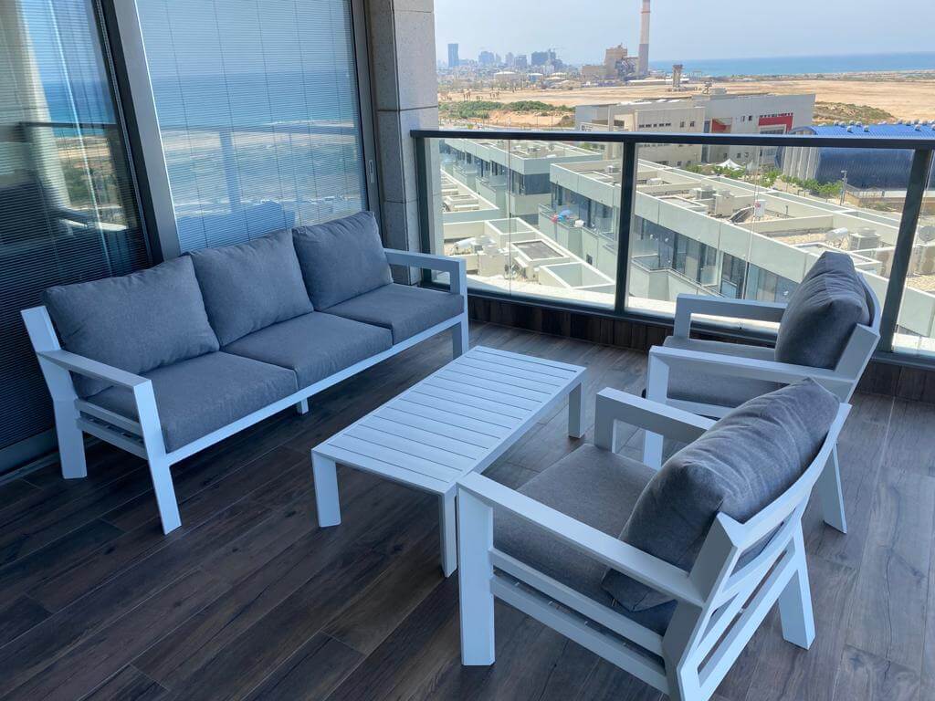 - מערכת ישיבה לגינה בעלת עיצוב מודרני ומיוחד העשויה כולה מאלומיניום