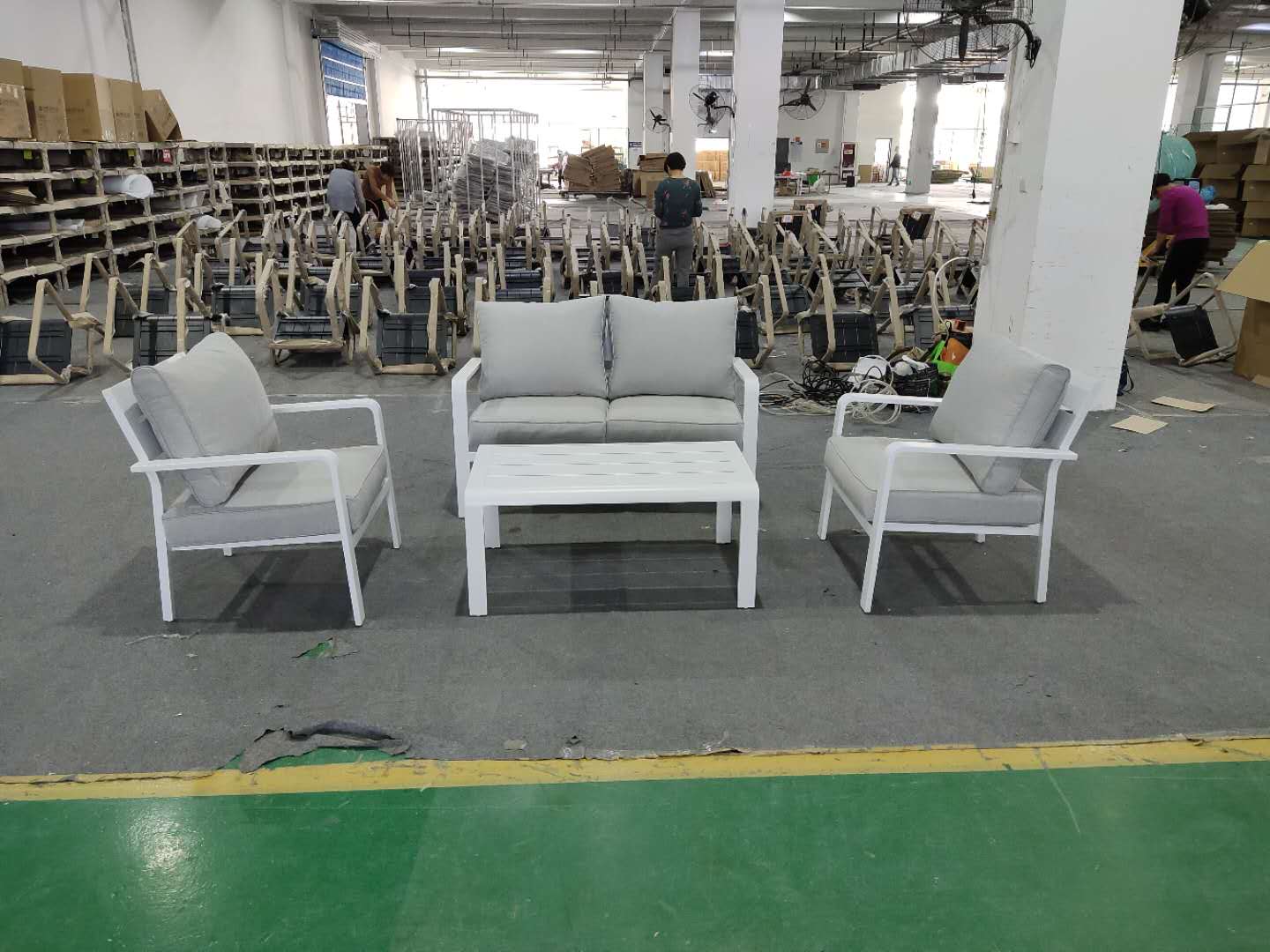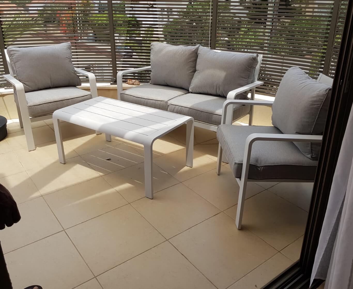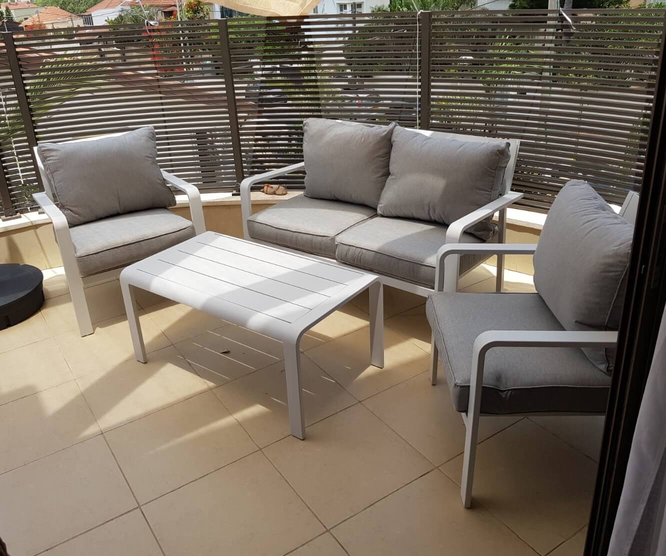 - פינת ישיבה מאלומיניום קומפקטית ועדינה המתאימה הן לגינה והן למרפסת